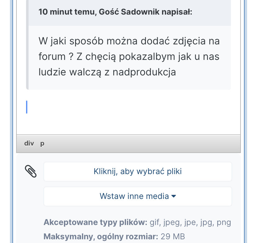 W trakcie pisania pod obszarem tekstowym jest ikona Spinacza - klikamy obok niej i dodajemy obrazek do tekstu