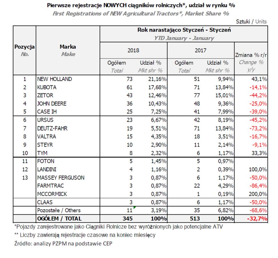 Gość Marcin Napisano 3 Maja 2018 Zgłoszenie Napisano 3 Maja 2018 Cześć, nie ma z tym raczej problemu. Kwestia kontaktu z dealerem. Albo Ci przywiozą ciągnik na podwórze i potestujesz kilka godzin, albo zaproszą do siebie i zrobią Ci indywidualny pokaz, gdzie będziesz mógł potestować. Na pewno warto to zrobić!! Szczerze namawiam. Class, Ursus, John Deere, Farmtrac, Fendt, Zetor, DeutzFahr czy NewHolland - myślę że nie będzie problemu by poszli Ci na rękę. W ońcu to oni chcą Twoje pieniądze, wszyscy naraz ..., a Ty masz wybór spośród wszystich! :)) Wklejam Ci poniżej rejestracje za luty 2018 ... Cytuj