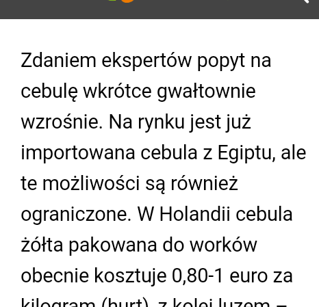 Gość Rolnik Napisano 21 Lutego 2023 Zgłoszenie Napisano 21 Lutego 2023 40 minut temu, Gość malopolanin napisał: Mam 30 ton pieknego risburgera 5 podlewanego kropelkowo panowie produceci jak myslicie kiedy na rybitwach w krakowie bedzie 100zl/10kg bo ze bedzie to pewne tylko kiedy na dzien wczorajszy 3.8-4.2kgna rybitwach. Podobno niesamowicie cena ma wyskoczyć po połowie marca. A może wcześniej tylko nie dać się straszyć jakimś importem bo cebuli są ogromne braki na całym świecie. Nikt nie będzie dla nas robił prezentów w postaci taniej cebuli. Każdy chce zarobić i to dużo. 100 ZŁ za 10 kg.- dlaczego nie?. Przy tych cenach nawozów itp.itd. Kupcy jak nam dają marne grosze w latach urodzaju to się nad nami nie lituja. A teraz oni i tak zarobią swoje Tak więc w czym problem. Cytuj