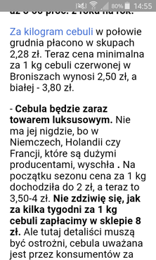 Gość Producent 4 pokolenie Napisano 22 Lutego 2023 Zgłoszenie Napisano 22 Lutego 2023 51 minut temu, Gość Ekonomista napisał: Marzenie ściętej głowy o cenie 10zl/kg. W tej chwili przy cenach detalicznych 5zl/kg ludzie nie chcą kupować cebuli, a będzie drożej to przestaną konsumować. To nie jest warzywo bez którego nie da rady żyć, przynajmniej nie w naszych kraju. Ludzie kupowali cały czas po 4 zł w markecie to 5 czy 7zł nie wpłynie znacząco na wielkość zakupów Cytuj
